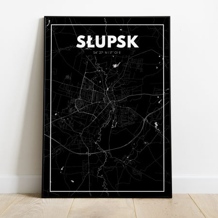 Klasyczna mapa Słupska w kolorze czarnym.